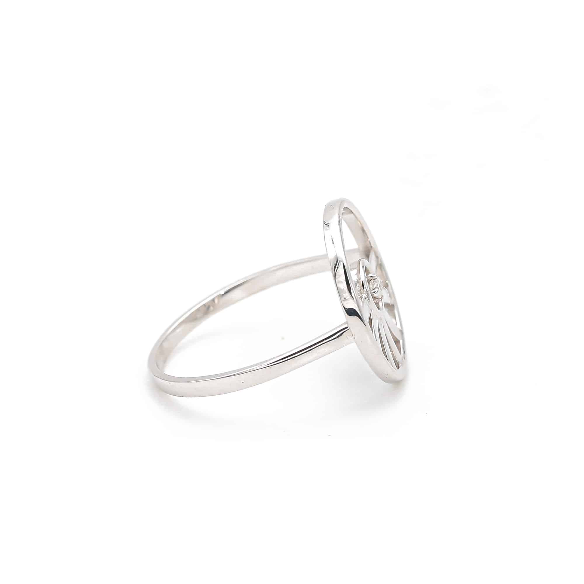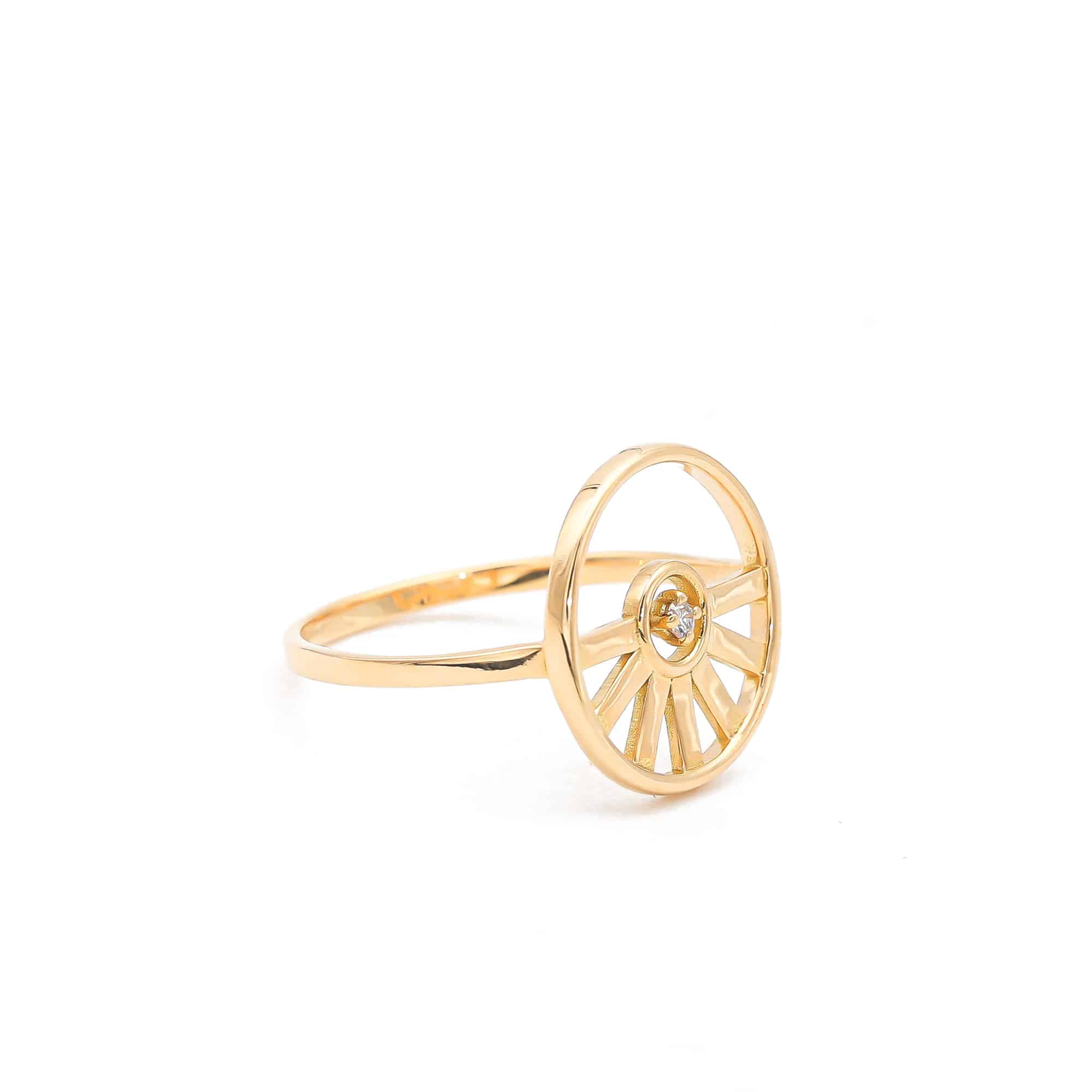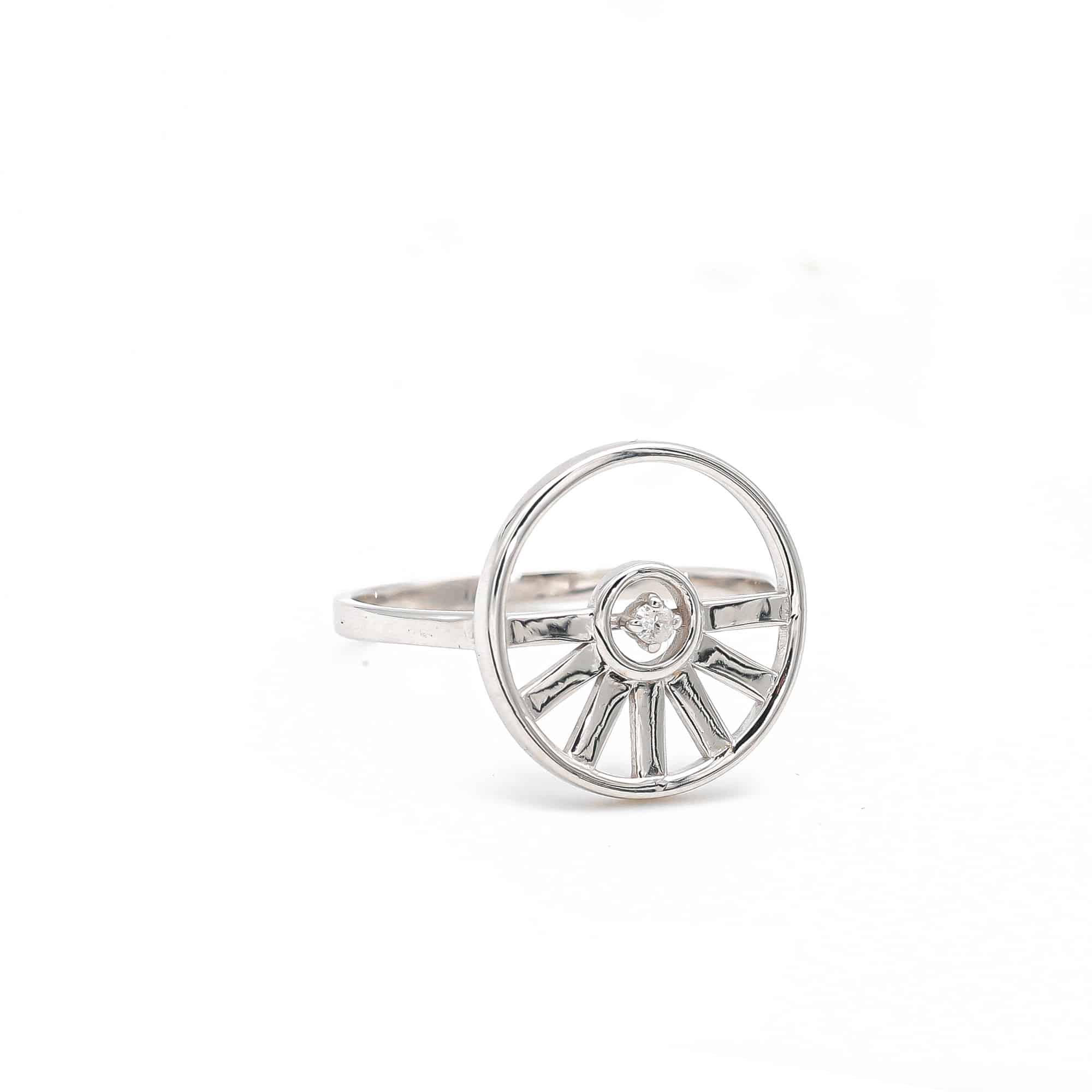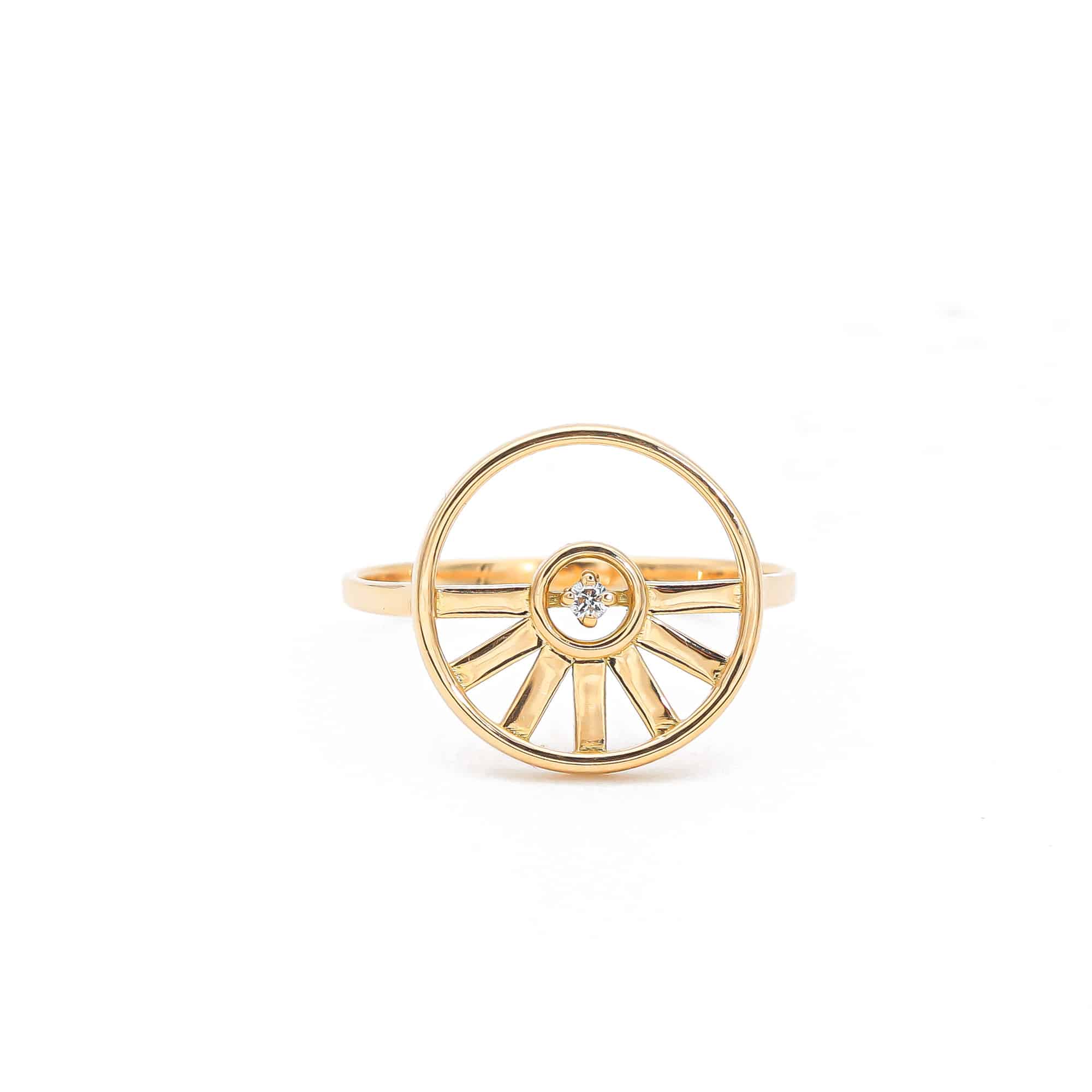« LET THE SUN SHINE IN (laisser entrer le soleil) ! c’était l’idée de la colleciton SUNSHINE. Si je suis le soleil et la lumière, je reçois la lumière. » La bague SUNSHINE est à la fois légère et présente. Protégée par un cercle donne, elle peut se porter en soleil levant ou couchant selon les envies.